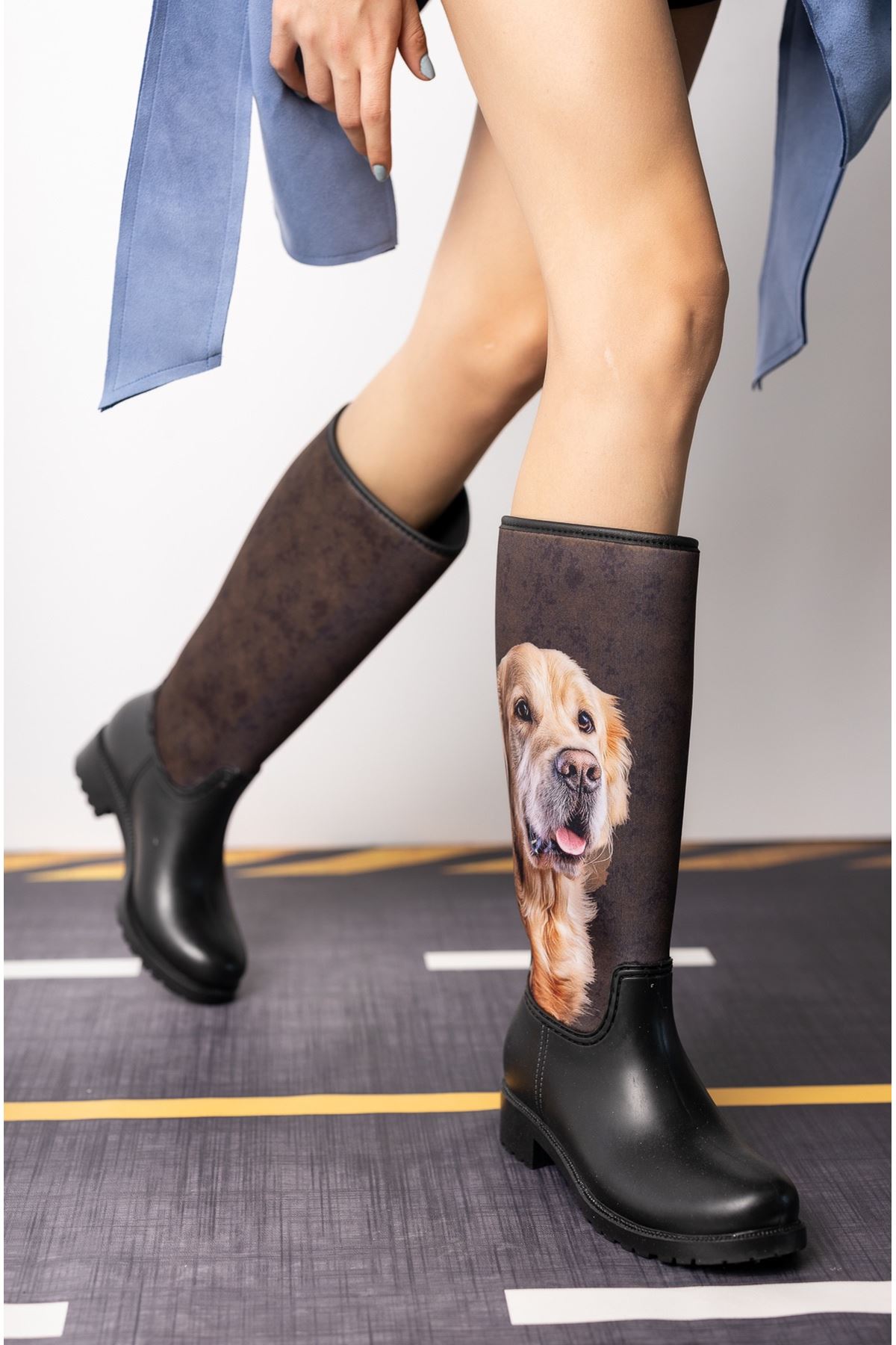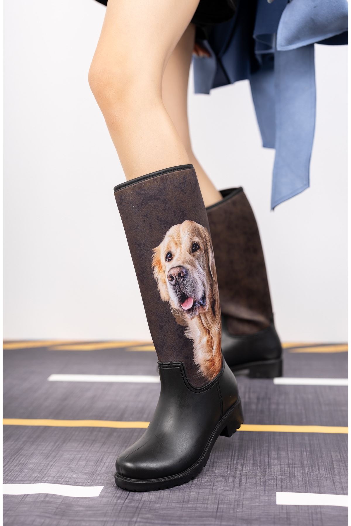 Baskılı Uzun Yağmur Botu